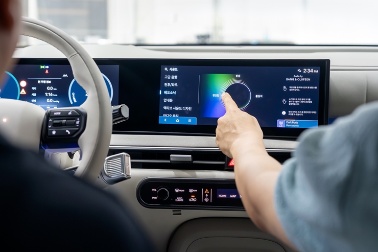 김동진 팀장: 넥쏘에 적용된 ‘오디오 바이 뱅앤올룹슨’ 사운드 시스템의 UX/UI는 직관성과 감성적 몰입을 동시에 만족시키는 혁신적인 사용자 경험을 제공합니다. 고객 여러분께서는 미래 지향적인 컨셉에 부합하는 사운드 포커스(Sound Focus)와 베오소닉(Beosonic™) 기능을 통해 전문적인 튜닝 지식 없이도 음악의 분위기나 장르에 맞춰 사운드를 자유롭게 커스터마이징하실 수 있습니다. 또, 미니멀하면서도 고급스러운 UI 디자인은 넥쏘의 프리미엄 인테리어와 자연스럽게 어우러져 시각적으로도 고급스러운 브랜드 경험을 선사합니다. 이처럼 넥쏘에 적용된 ‘오디오 바이 뱅앤올룹슨’ 사운드 시스템의 UX/UI는 고도화된 음향 기술을 사용자가 쉽고 감성적으로 조작할 수 있도록 지원하는 디지털 경험으로, 단순한 기능 제공을 넘어 수소전기차로서의 프리미엄 가치를 한층 더 높여드릴 수 있다고 생각합니다.