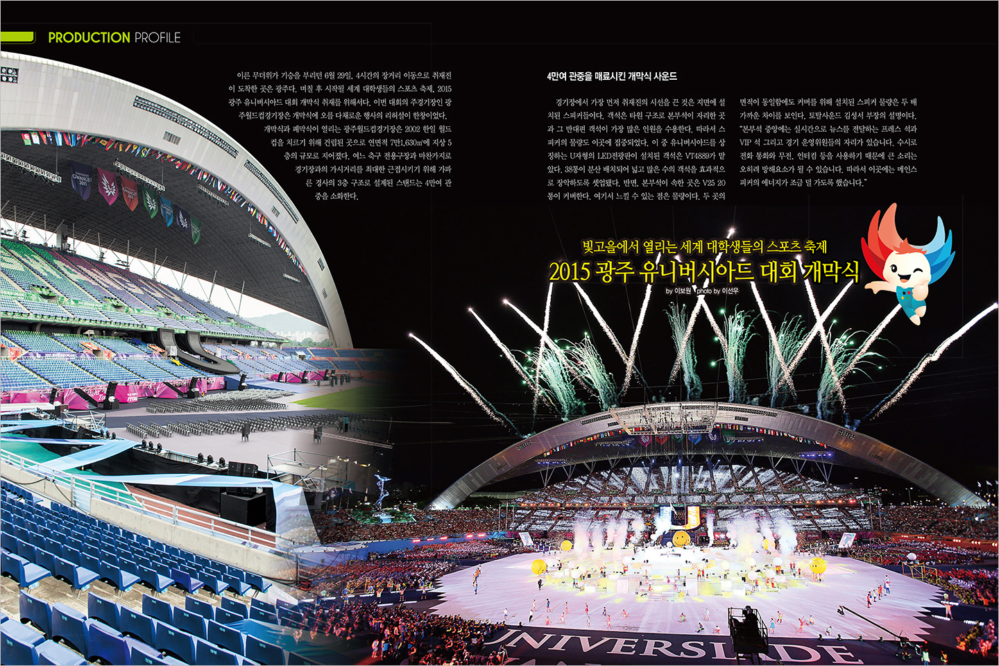 26 PRODUCTION PROFILE 빛고을에서 열리는 세계 대학생들의 스포츠 축제 2015 광주 유니버시아드 대회 개막식