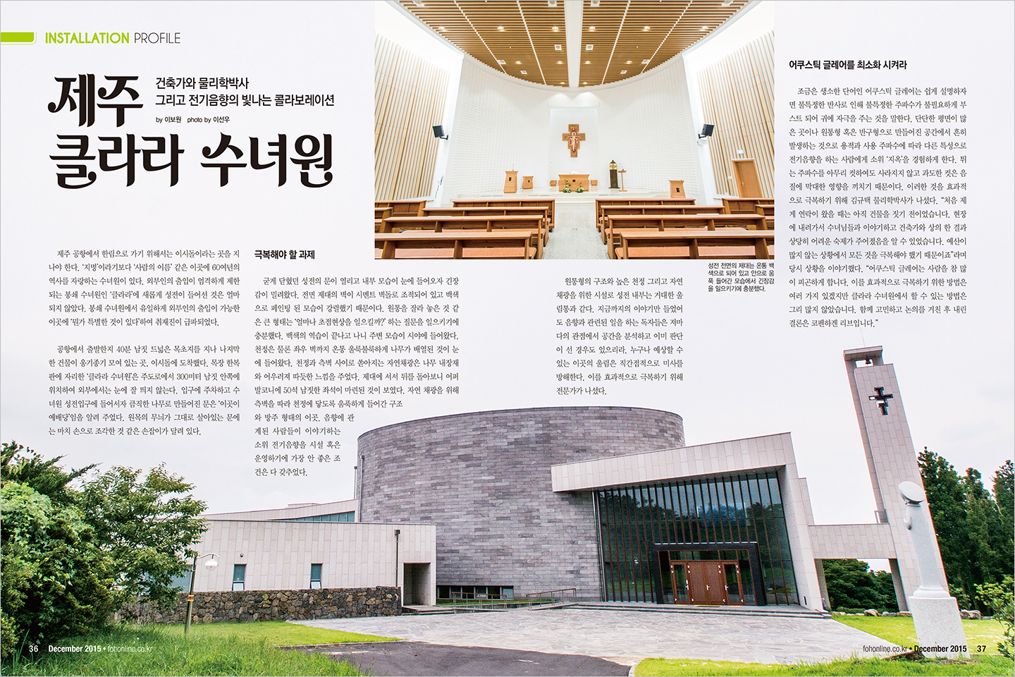 36 INSTALLATION PROFILE 제주 클라라 수녀원 건축가와 물리학박사 그리고 전기음향의 빛나는 콜라보레이션