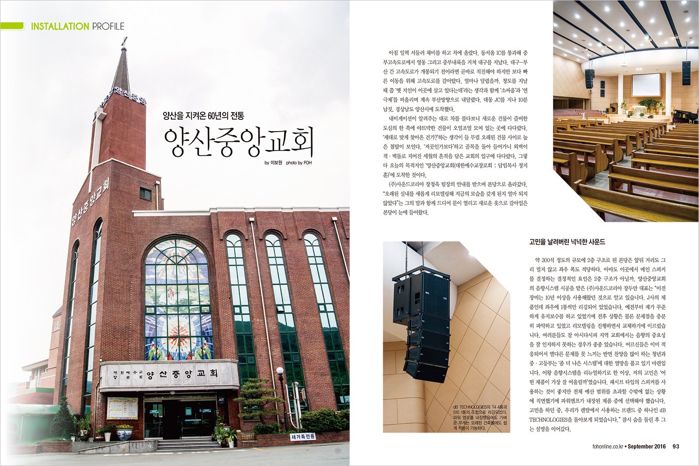 92 INSTALLATION PROFILE 양산을 지켜온 60년의 전통 양산중앙교회