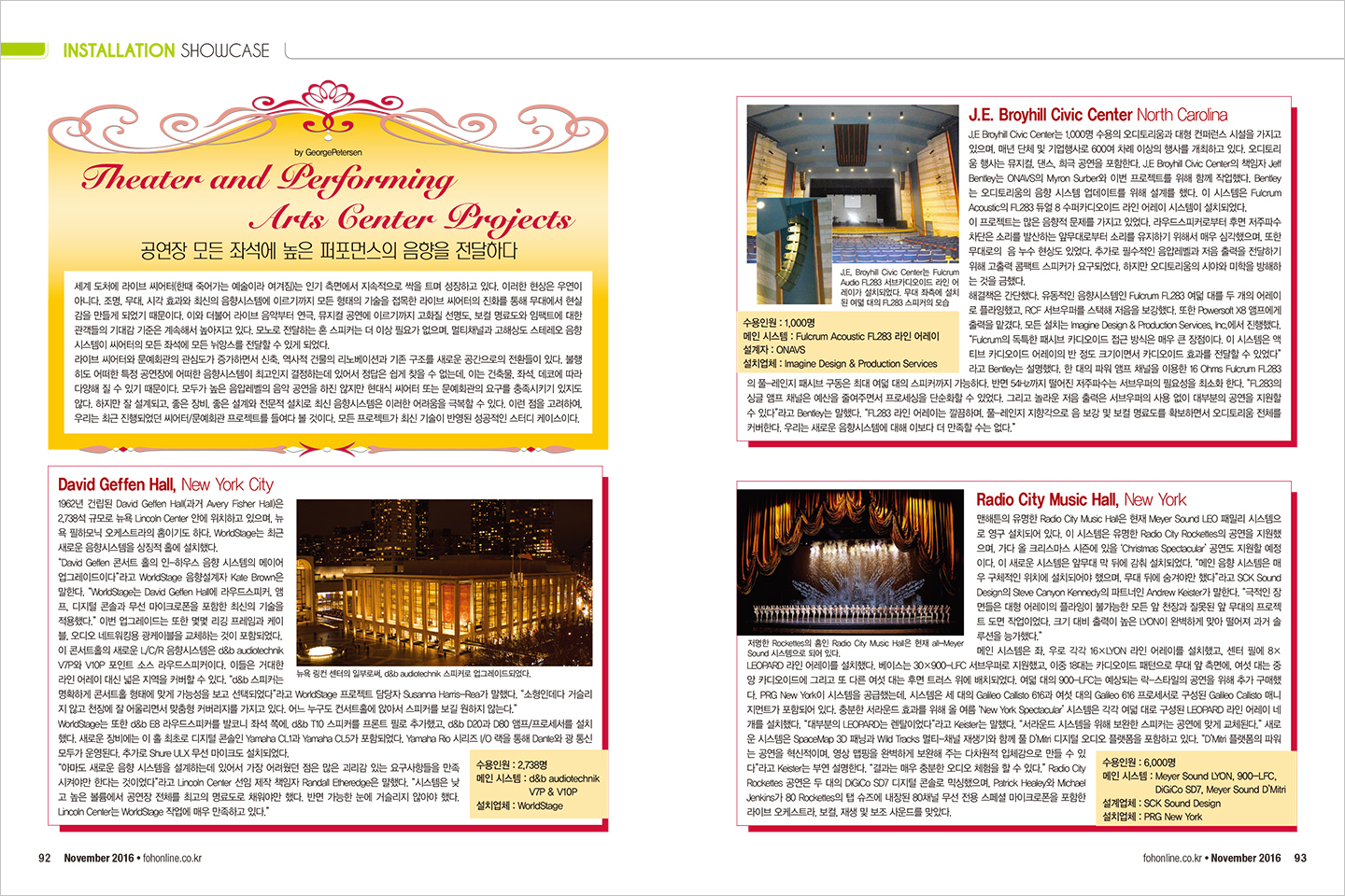 92 INSTALLATION SHOWCASE THEATER AND PERFORMING ARTS CENTER PROJECTS 공연장 모든 좌석에 높은 퍼포먼스의 음향을 전달하다
