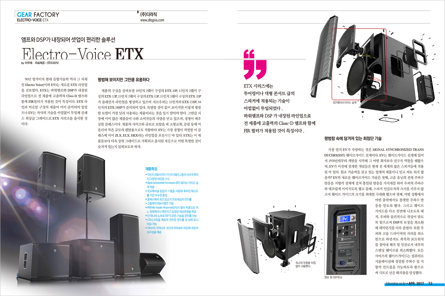 72 GEAR FACTORY 앰프와 DSP가 내장되어 셋업이 편리한 솔루션 Electro-Voice ETX