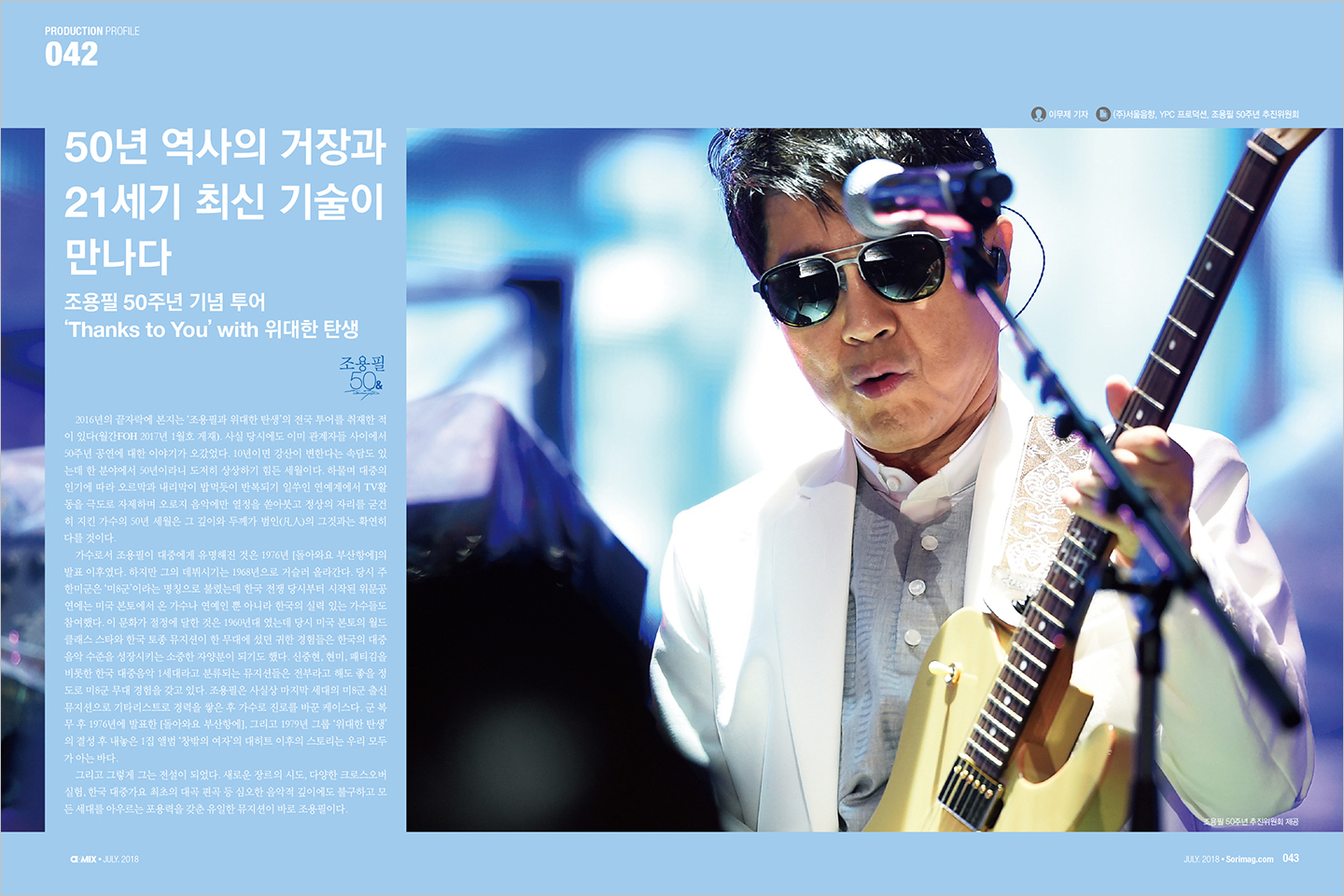 42 PRODUCTION PROFILE 50년 역사의 거장과 21세기 최신 기술이 만나다 조용필 50주년 기념 투어 ‘Thanks to You’ with 위대한 탄생