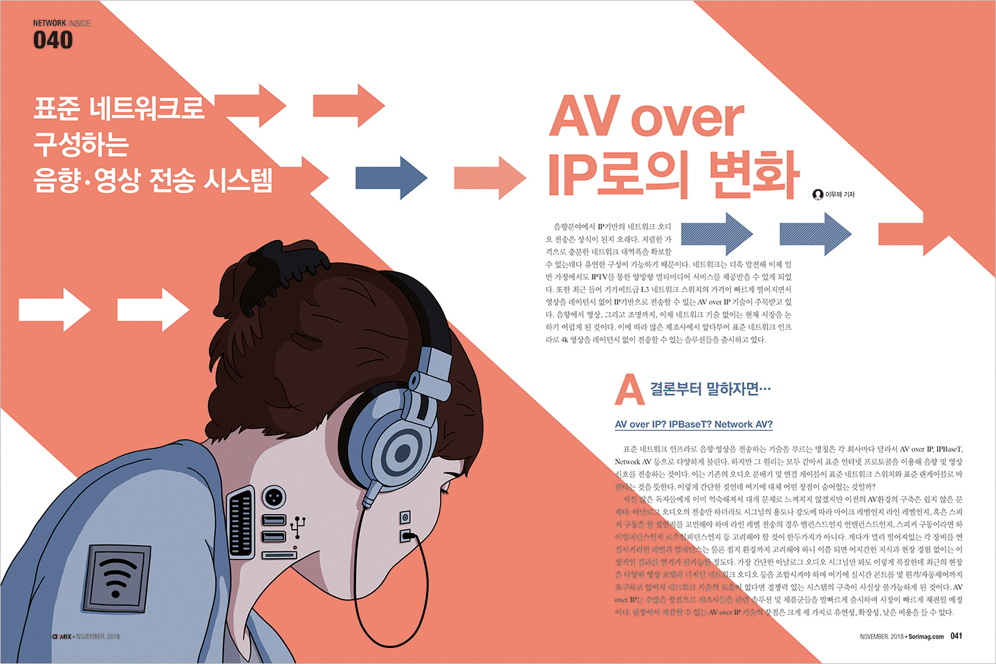 40 NETWORK INSIDE AV over IP로의 변화 표준 네트워크로 구성하는 음향·영상 전송 시스템