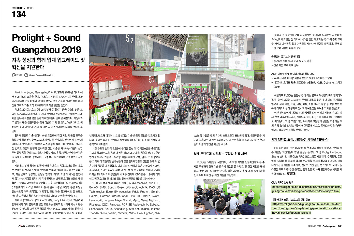 134 EXHIBITION FOCUS 지속 성장과 함께 업계 업그레이드 및 혁신을 지원하다 Prolight + Sound Guangzhou 2019