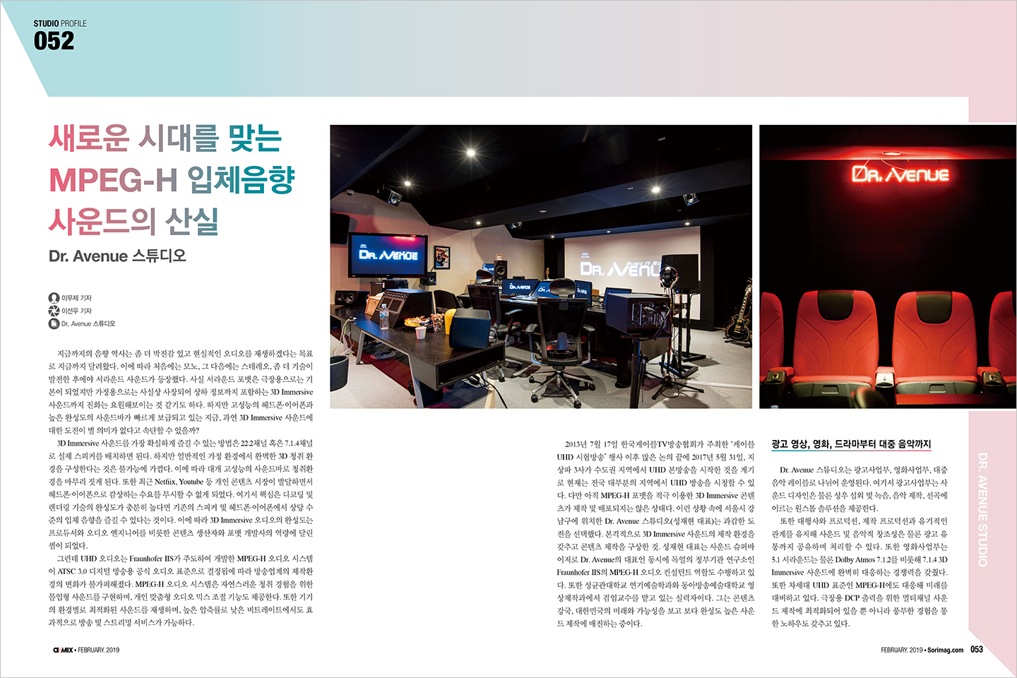 52 STUDIO PROFILE 새로운 시대를 맞는 MPEG-H 입체음향 사운드의 산실 Dr. Avenue 스튜디오